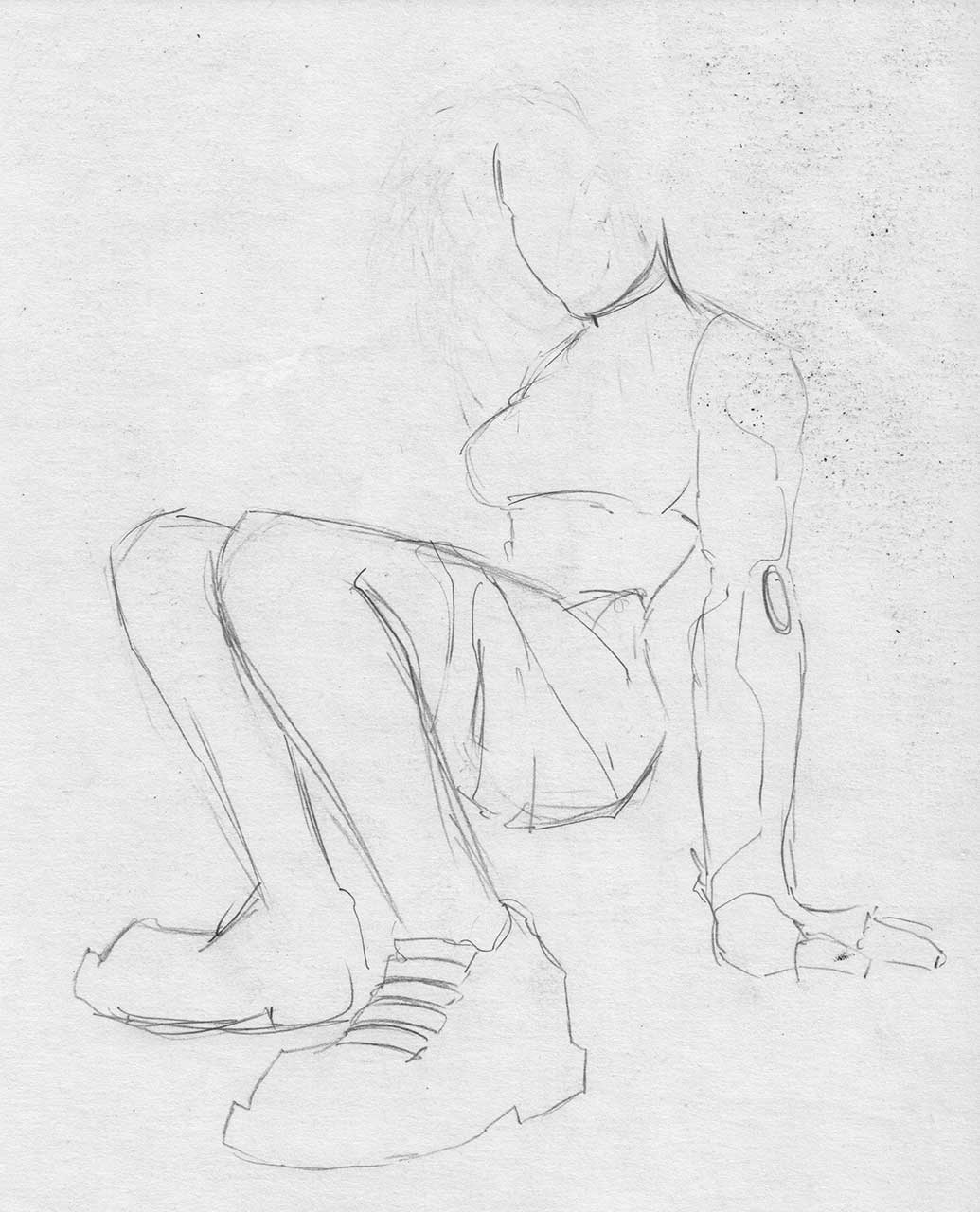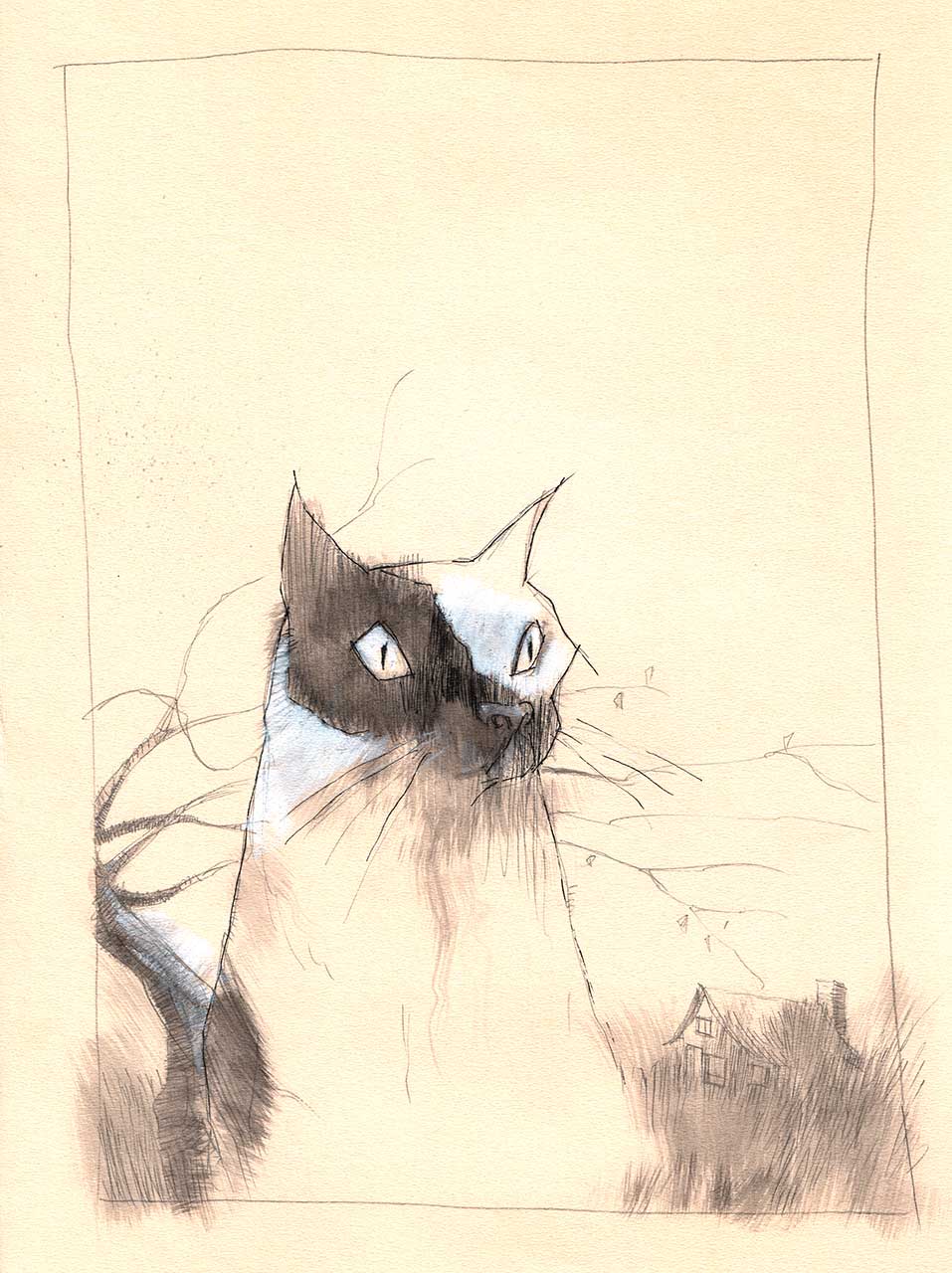 Crayon à papier, encre de chine et pastel blanc. Dessin jaunis par le temps.