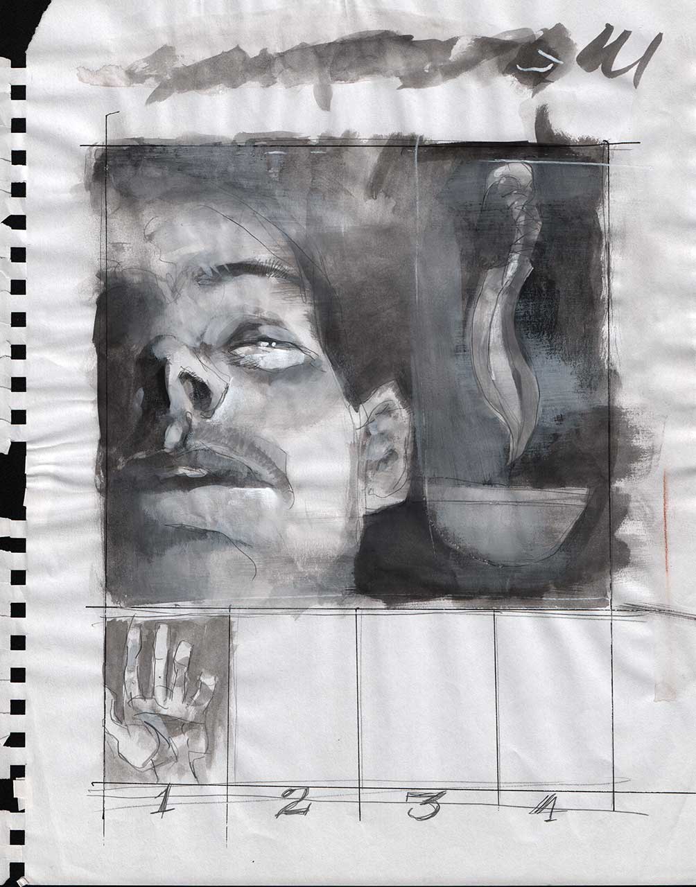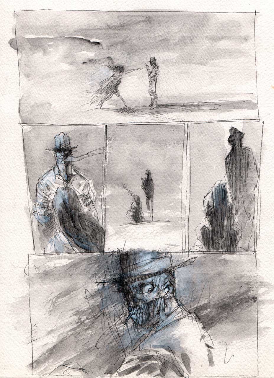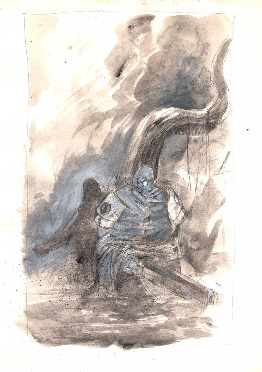 Encre de chine sur papier dessin pour la couverture de Wolfpack #6.