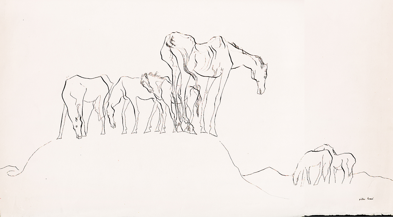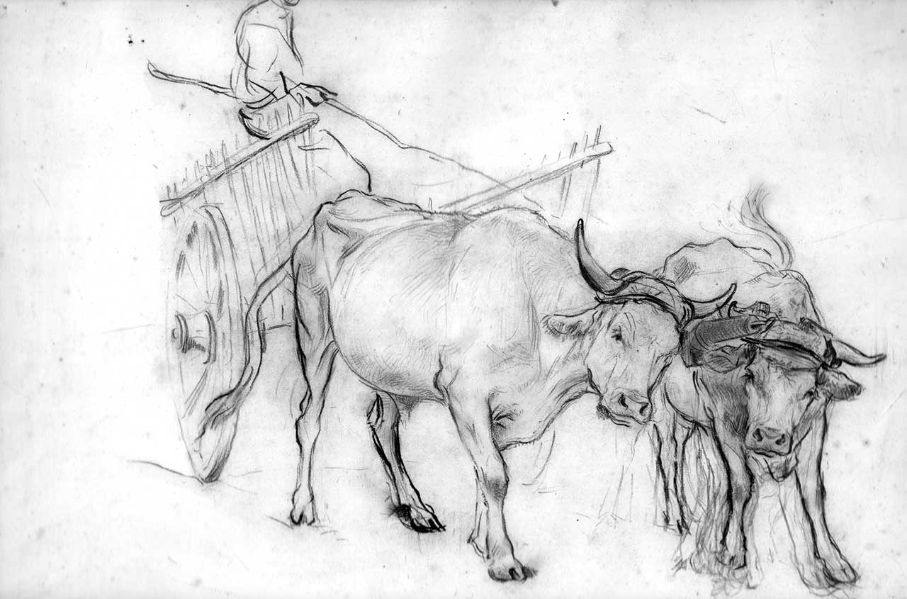 Dessin à la pierre noire. Cachet "Alfred Dehodencq" en bas à droite. Quelques taches et trous d'épingle.