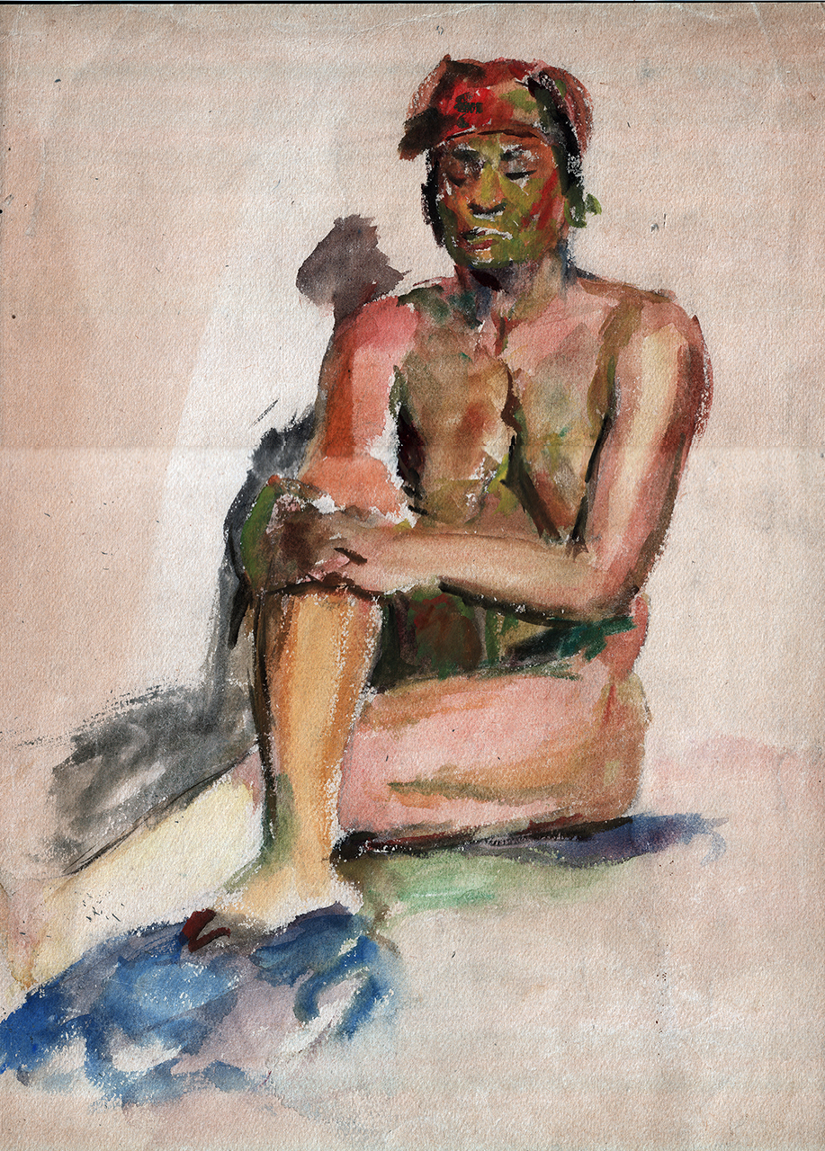 Aquarelle dans un bon état de conservation pouvant présenter légères rousseurs, salissures et petits plis. Un petit trou de vrillette bord gauche.
