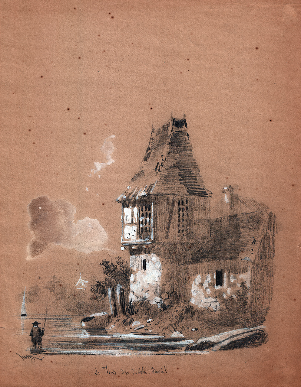 Dessin annoté "La tour du diable". Bon état de conservation, légères rousseurs.