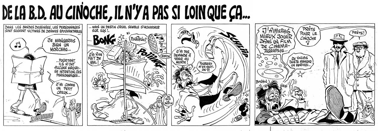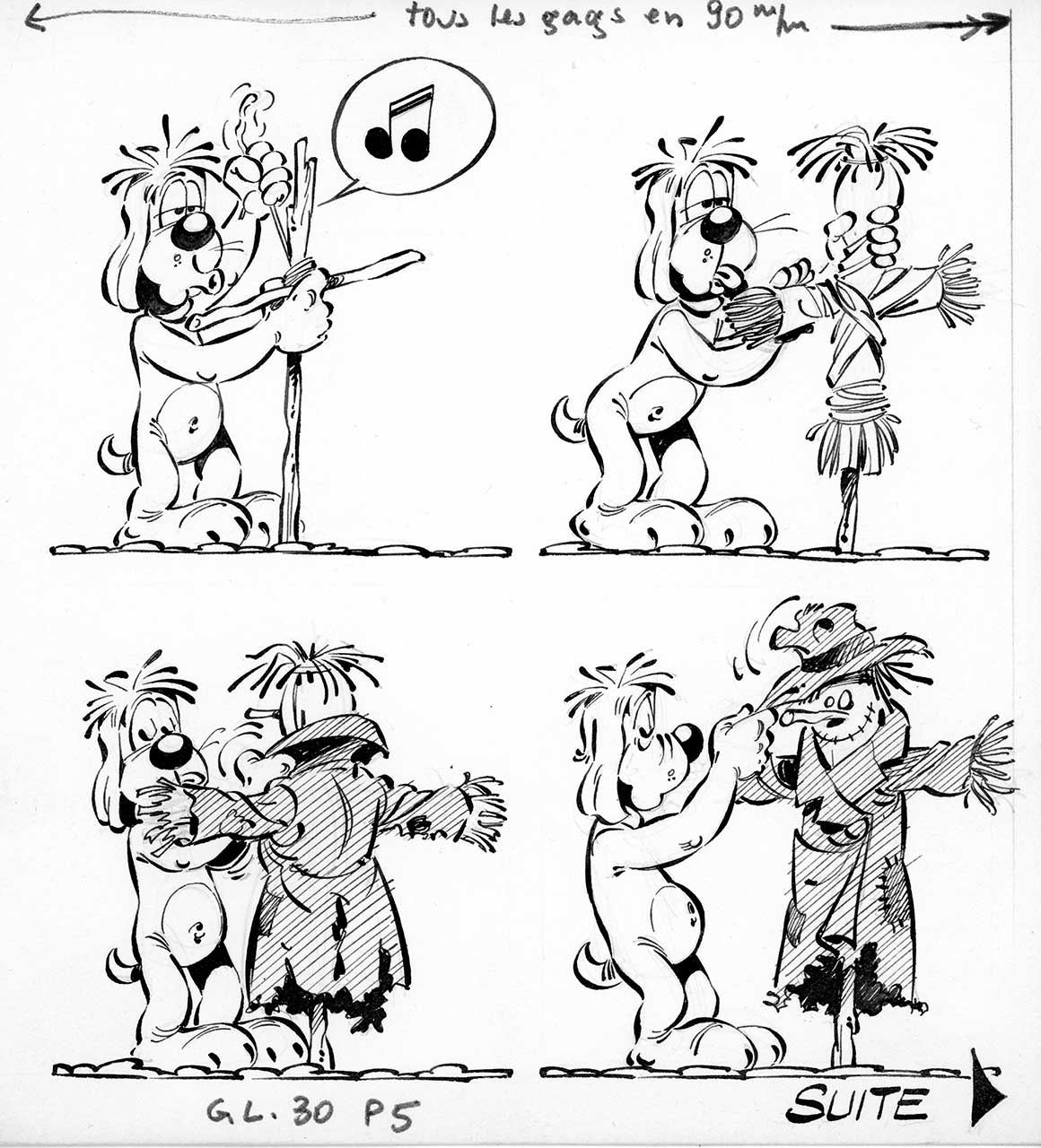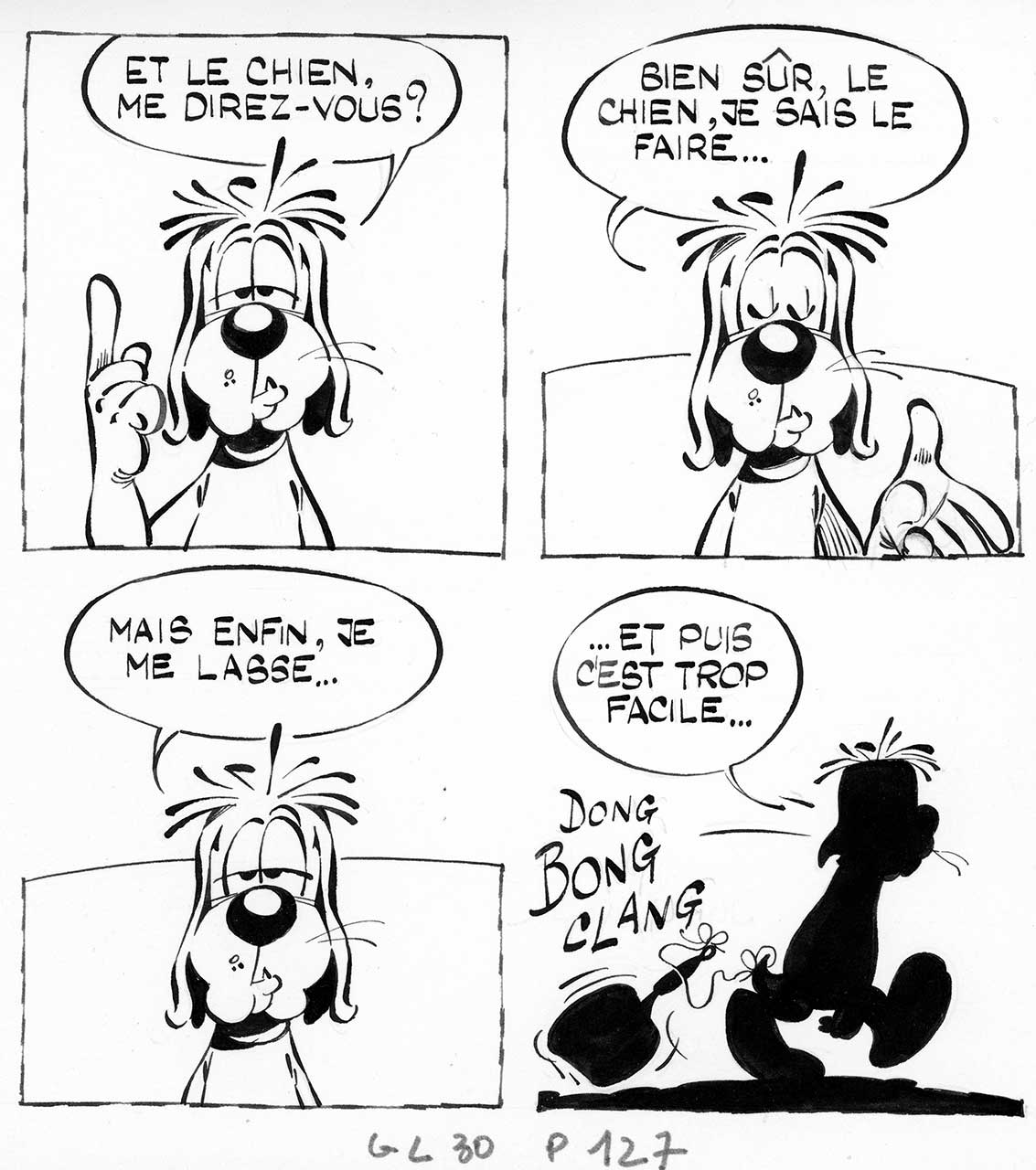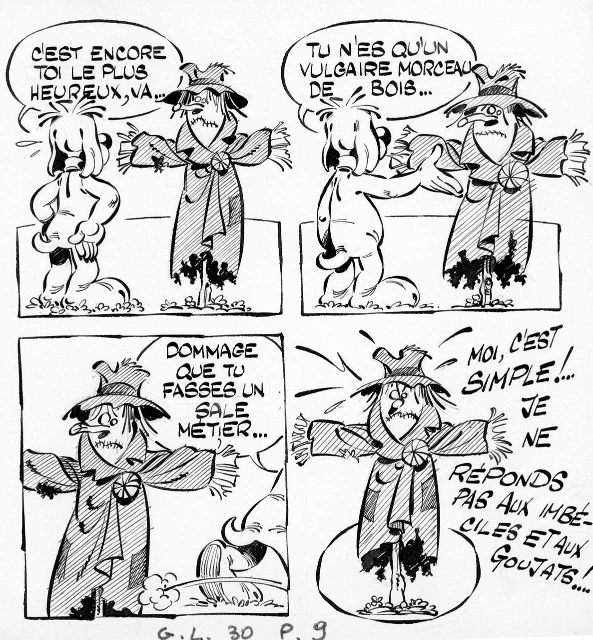 Planches originales en deux parties (les trois premières cases ne sont pas liées à la quatrième). Très légères traces rouges sur la quatrième case.