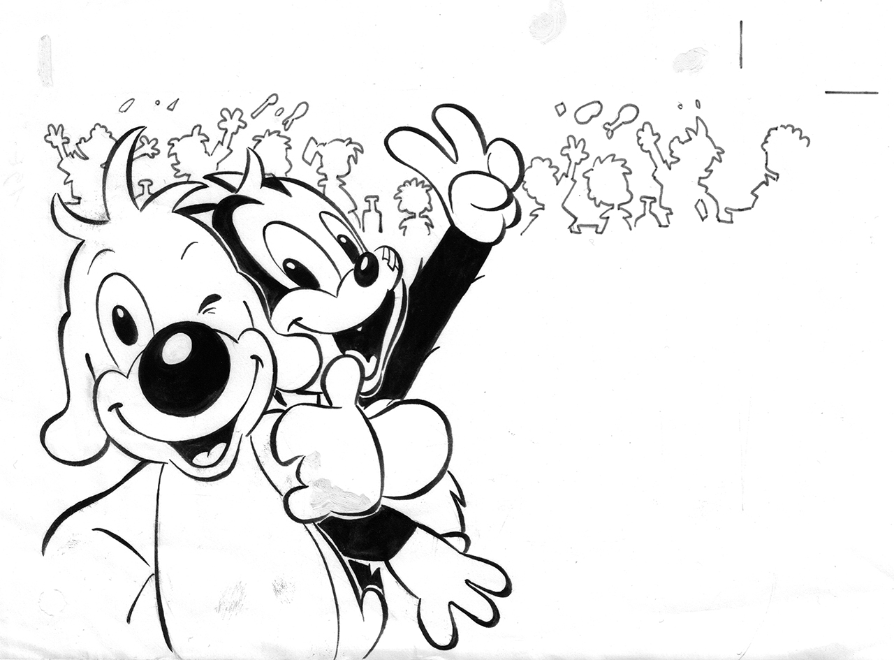 Dernière planche de la souris circulant sur le marché. Encre de chine sur papier dessin.