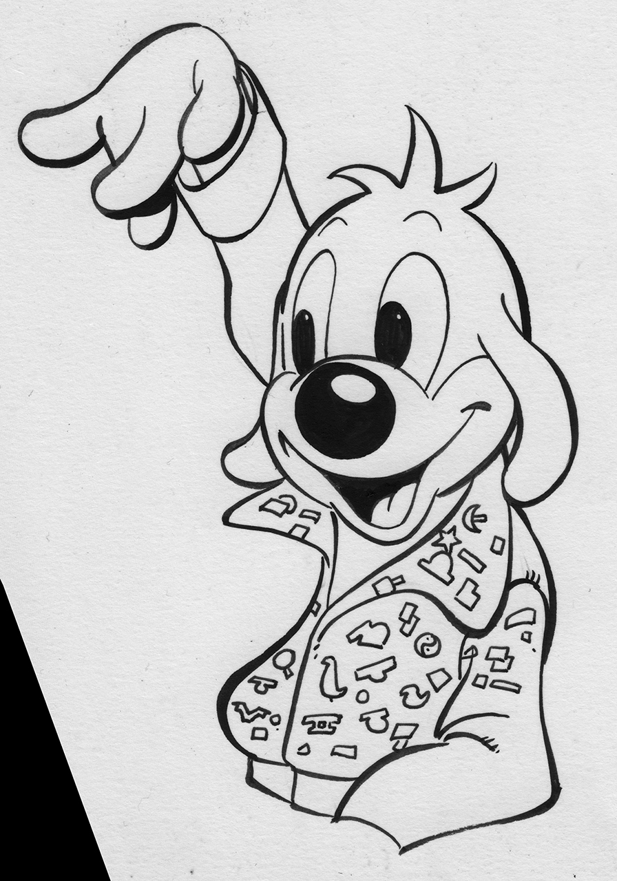 Dessins à l'encre de chine sur papier dessin réalisés pour le coffret "Pierre Perret, 15 ans de chanson". A Signaler un très petit croquis derrière le premier dessin.