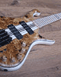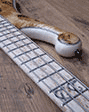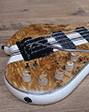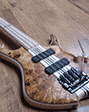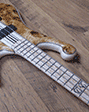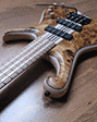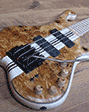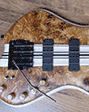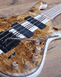 table loupe de peuplier, touche érable piqueté (bird eye ample), manche traversant